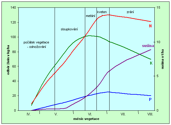 dusíku, fosforu a draslíku v průběhu vegetace pšenice jarní.